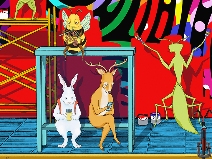 I was commissioned by the Champaign-Urbana Mass Transit District to help promote their Zero Emission Technology, the “first transit agency in the nation with a hydrogen fleet fueled entirely from our own 100% renewable source,” by creating characters and scenes based on a list of animals representing the new fleet of zero-emission buses. I am incredibly honored to have been a part of the project in my own small way. The project has helped me to appreciate all the hard work that goes into the logistics of running a public transportation system smoothly and safely for passengers on a daily basis. The folks at CU-MTD have been generous with their support and enthusiasm during the entire process, and I am grateful and feel fortunate to have had the opportunity work with them.
